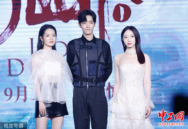 2019年9月10日,北京,电影《诛仙》发布会,肖战与李沁、孟美岐三位主演现身,非常养眼的阵容。肖战称最大的不同是能够和非常专业的团队合作,也是第一次尝试大荧幕。