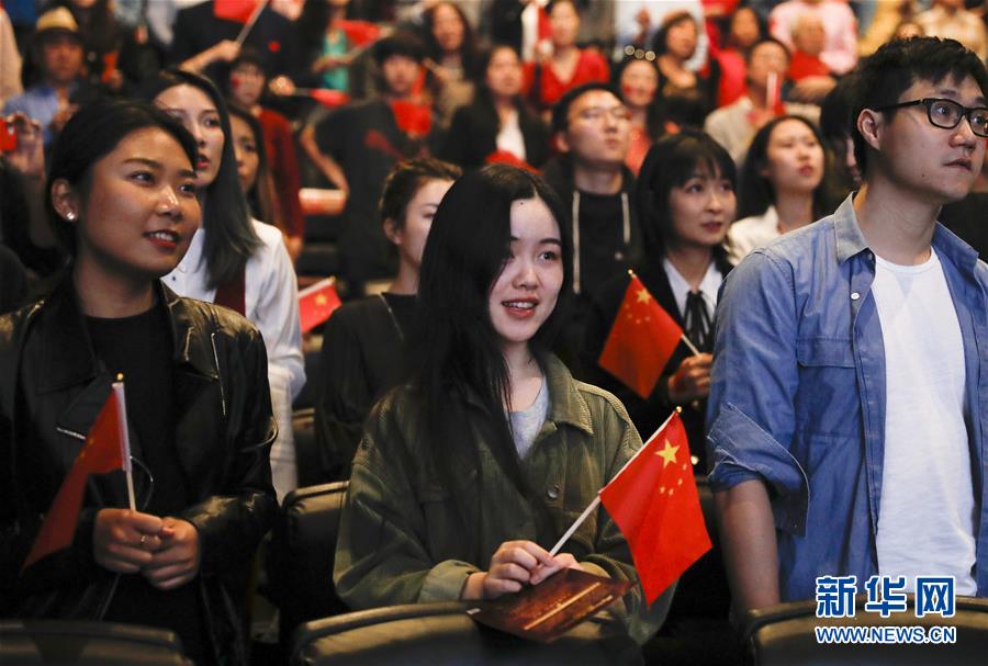 9月30日,在美国旧金山,观众在电影《我和我的祖国》当地首映礼上合唱同名主题歌。 为新中国成立70周年献礼的电影《我和我的祖国》近日在海外一些国家影院上映,受到热烈欢迎。观影的华侨华人纷纷表示,影片中讲述的普通人的故事生动感人,展示了新中国70年的壮阔历程,令人感受到祖(籍)国的强大。 新华社发(李建国 摄)