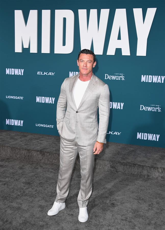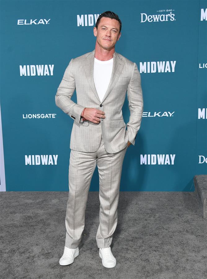 新华社照片,外代,2019年11月7日 电影《决战中途岛》洛杉矶首映 11月5日,在美国洛杉矶,电影《决战中途岛》的演员卢克·埃文斯出席影片首映式。