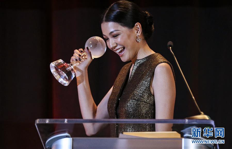 11月9日,在美国洛杉矶,哈萨克斯坦偶像明星加佐别可娃获颁“最佳女主角”奖。 新华社记者李颖摄