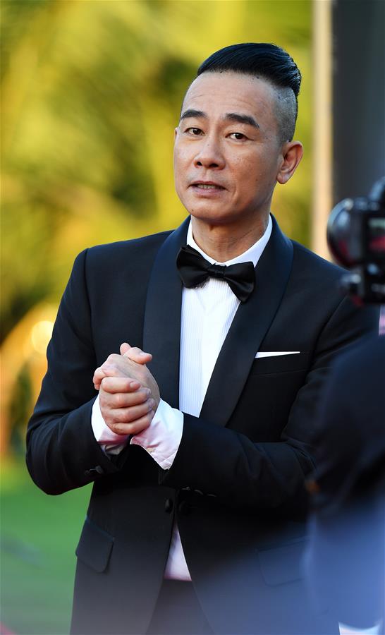 12月1日,演员陈小春亮相电影节红毯仪式。 当日,第二届海南岛国际电影节在三亚开幕。 新华社记者 郭程 摄