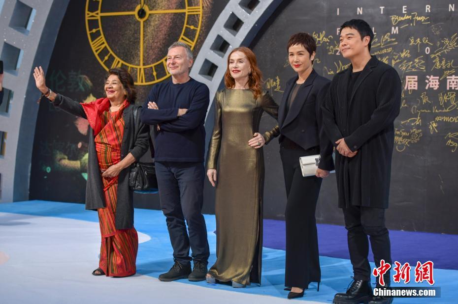 12月8日,第二届海南岛国际电影节闭幕红毯仪式在海南省三亚市凤凰岛国际邮轮码头举行。图为伊莎贝尔·于佩尔(中)、蒋雯丽(右二)、陈思诚(右一)等亮相红毯。骆云飞 摄