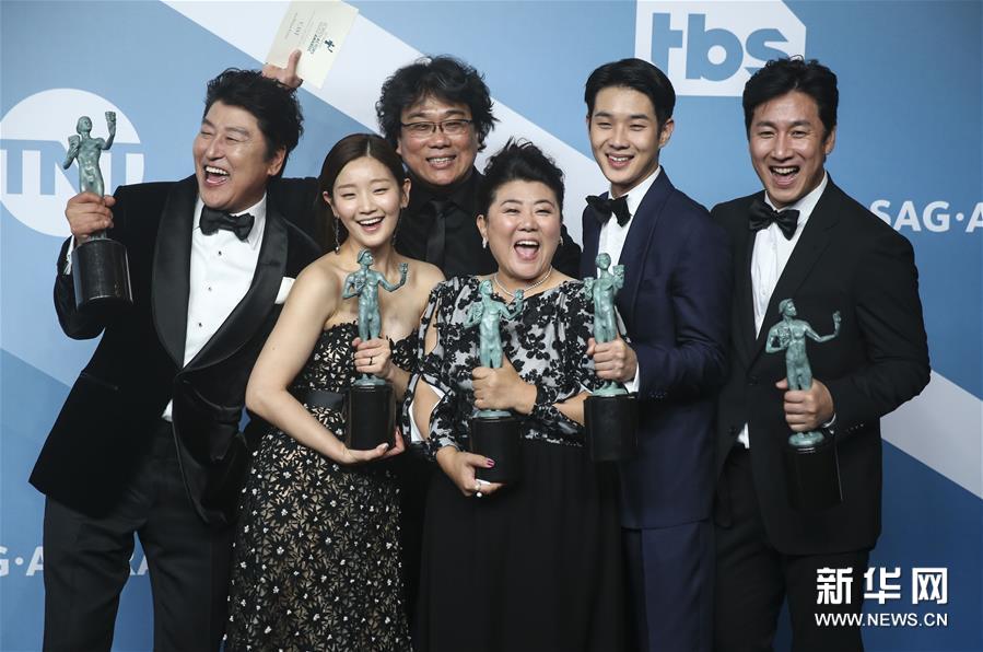 新华社洛杉矶1月19日电(记者高山 谭晶晶)第26届美国影视演员协会奖19日在洛杉矶揭晓,韩国黑色喜剧片《寄生虫》拿下分量最重的电影类最佳群戏奖,成为第一部获此殊荣的外语片。
