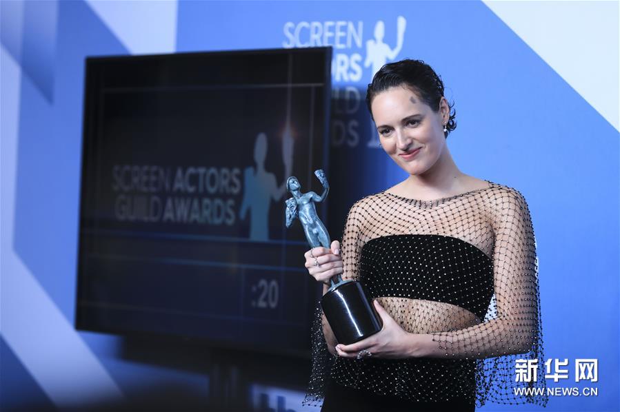1月19日,在美国洛杉矶,演员菲比·沃勒-布里奇凭借《伦敦生活》获得喜剧类最佳女演员奖。新华社记者 李颖 摄