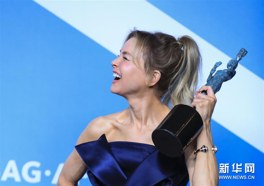 1月19日,在美国洛杉矶,演员蕾妮·齐薇格凭借《朱迪》摘取最佳女主角奖。新华社记者 李颖 摄