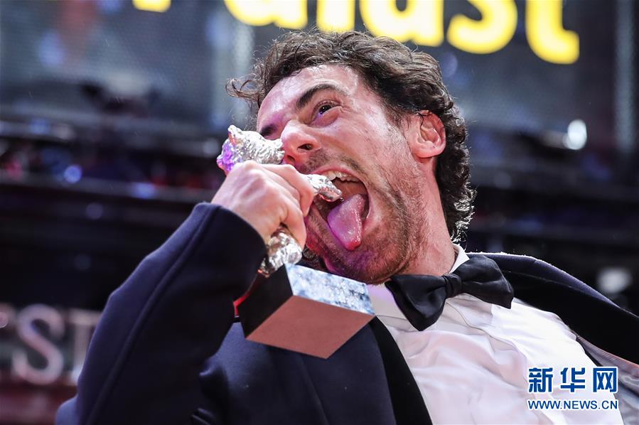 2月29日,在德国首都柏林,意大利男演员埃利奥·杰尔马诺在颁奖仪式后亮相红毯。埃利奥·杰尔马诺凭借影片《我想藏起来》获最佳男演员银熊奖。 新华社记者 单宇琦 摄