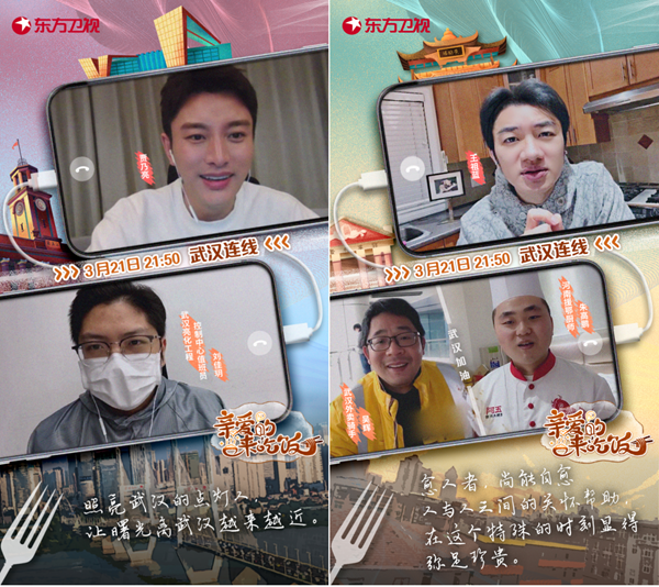 中国网娱乐3月23日讯 上周六晚,东方卫视国内首档都市观察类美食纪实综艺《亲爱的,来吃饭》重磅推出“武汉连线”特别节目。嘉宾贾乃亮、王祖蓝分别连线身在武汉的普通市民和一线工作者,以“云吃饭”的形式在边吃边聊中,为观众讲述了勇敢、积极、乐观、正能量的抗疫故事。节目播出后,许多观众在社交网络为节目点赞,并受到了《人民日报》《光明日报》《文汇报》《新闻晨报》等媒体的关注。