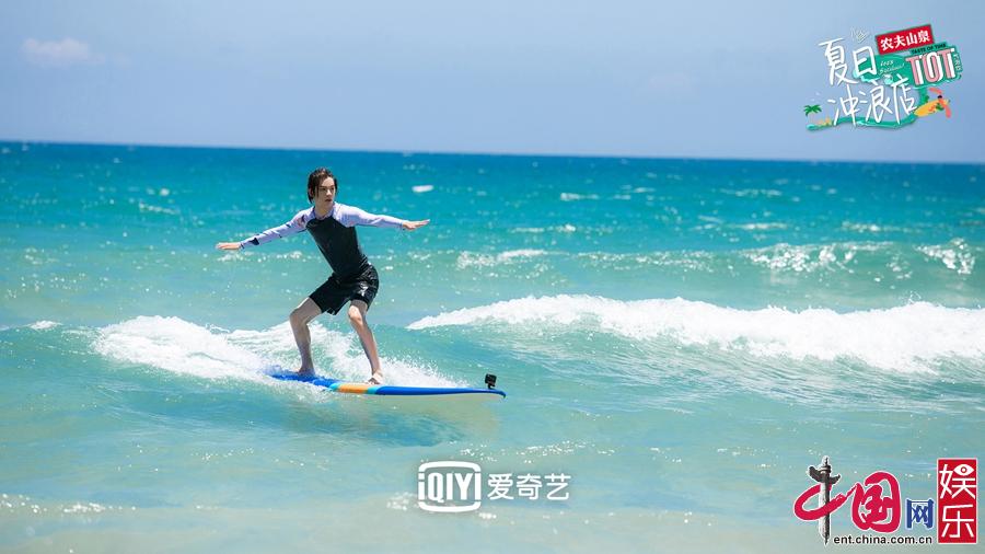 首期节目中,嘉宾们打卡冲浪运动,不仅收获了成就感,还趣事横生。在初学冲浪时,8G少年黄明昊望向海面开始幻想自己已是高段位冲浪选手畅游海面,结果被教练一秒唤回现实乖乖上课。虽然上课溜号,但不影响黄明昊成为嘉宾中上板第一人。随后,黄轩、韩东君、乔欣也相继成功上板,嘉宾们兴奋的双手紧握、高喊,收获了满满的成就感!嘉宾们在海面滑翔的感觉十分酷炫,隔着屏幕都能感受到冲浪的清凉感和幸福感。