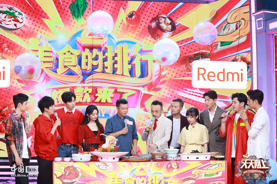 此次《天天向上》十二周年庆正值《天天向上》最爆款的美食季,在生日盛典当天《天天向上》特别策划了“家乡爆款美食”生日主题。除了赵丽颖以外,节目组还邀请了《中餐厅》中的另外4位爆款嘉宾张亮、摩登兄弟刘宇宁、林述巍与李浩菲一同作客《天天向上》十二周年生日宴。
