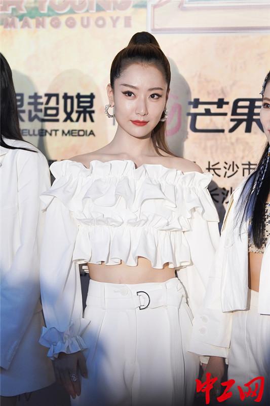 2020年8月9日,湖南长沙,青春芒果夜群访环节。“浪姐”万茜穿闪片V领裙仙气满满;宁静、郑希怡穿超飒古风红装造型美炸;张萌扎高马尾穿西装变女霸总;李斯丹妮、孟佳、白冰、王霏霏穿干练白色衣裤造型美炸。(图片来源:视觉中国)