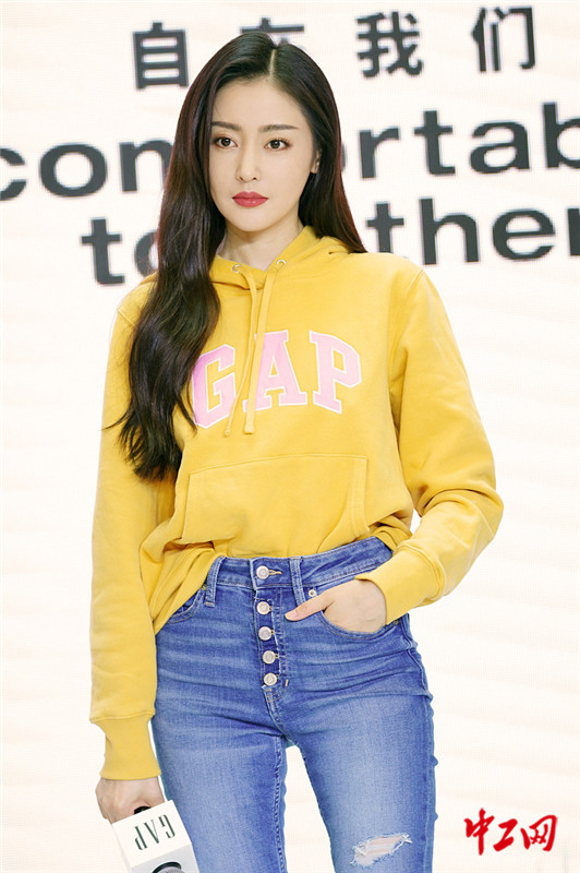 2020年9月12日,上海,张天爱出GAP品牌活动。她梳飘逸长发,装扮清新减龄女神范儿足,对镜甜笑秀逆天长腿气质佳,还和嘉宾热情拥抱十分暖心。视觉中国