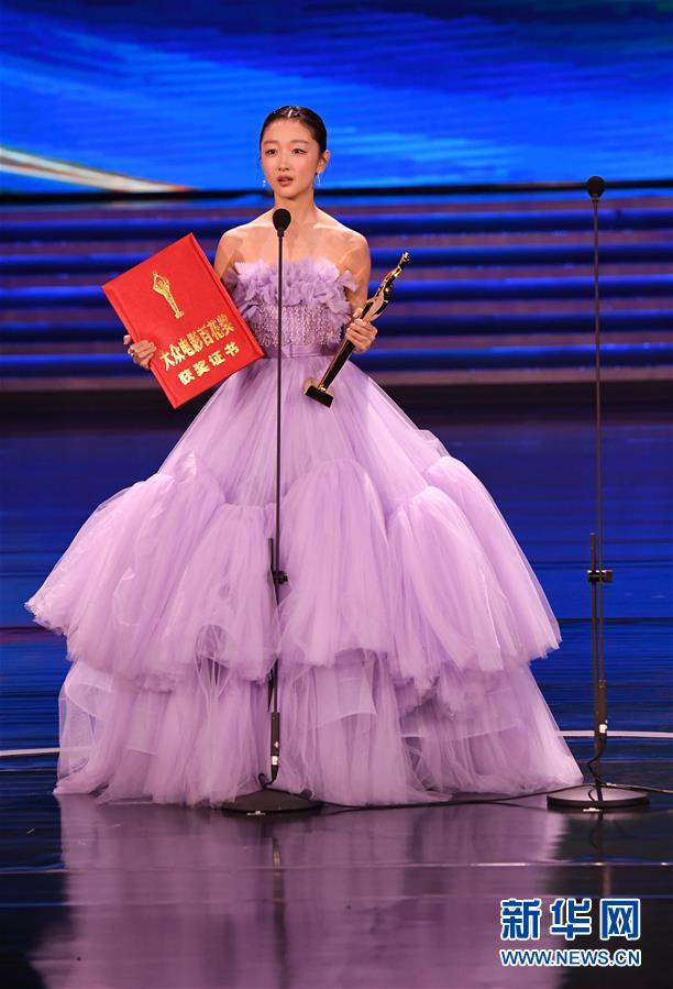 9月26日,周冬雨凭借影片《少年的你》获得最佳女主角奖。 当日,第35届大众电影百花奖颁奖典礼在河南郑州举行。 新华社记者 朱祥 摄