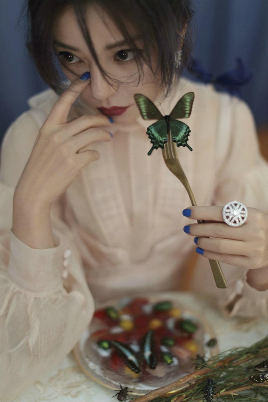 大片中,赵薇流转于盛宴之间,以美食为单品大展时尚表现力。渐变蓝色蝴蝶发尾创意十足,更添一丝女性的妩媚。优雅大方的现代女性气质完美诠释明黄、深灰、黑白等多重色彩,奶油质感造型更显细腻温柔。