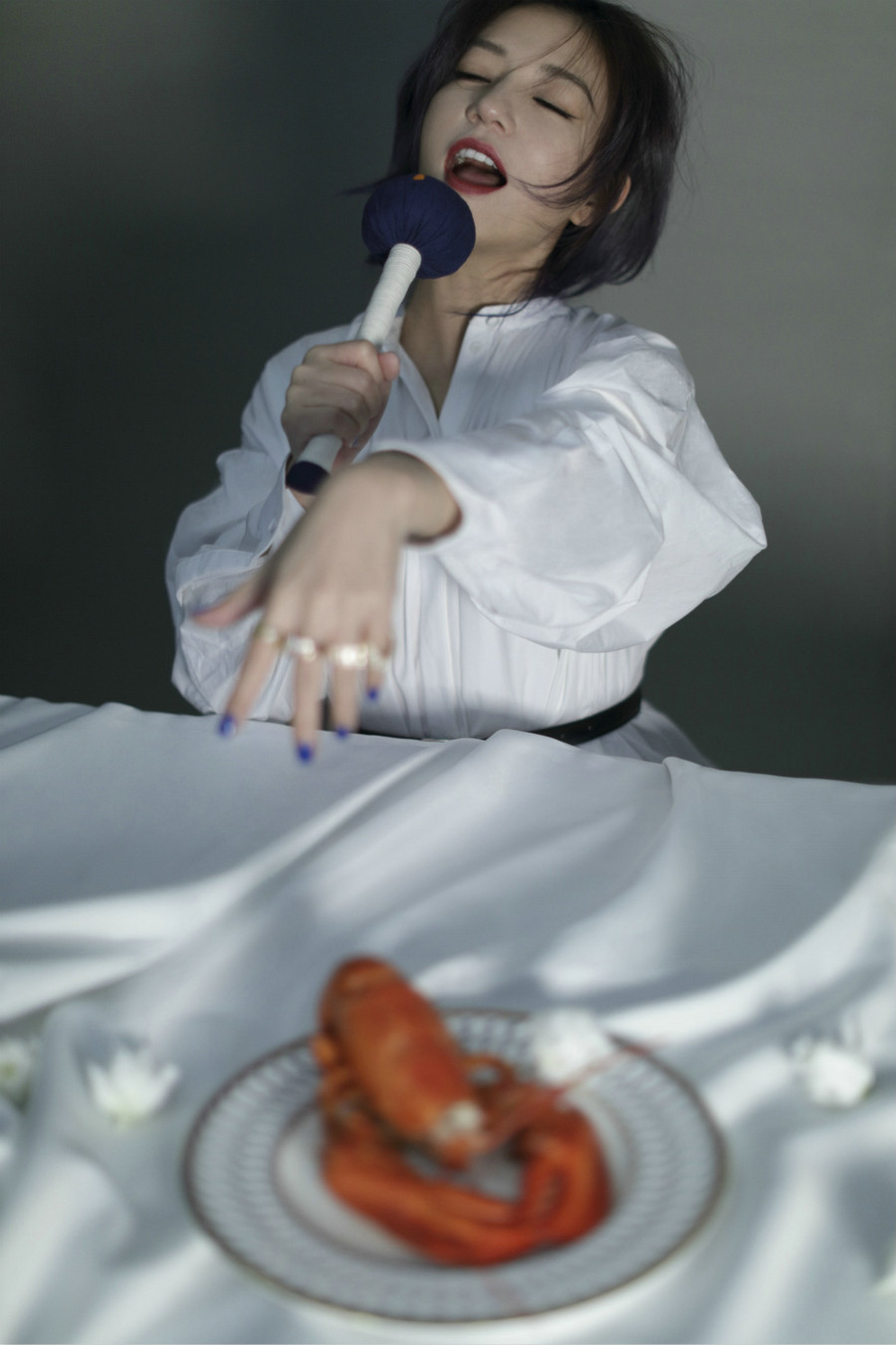 赵雅芝穿蓝色镶钻纱裙梦幻魅力