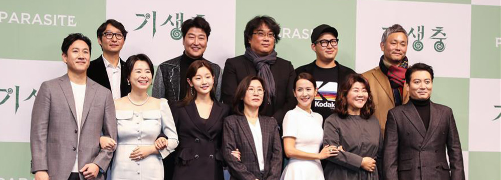韩国影片《寄生虫》主创团队在首尔举行记者会