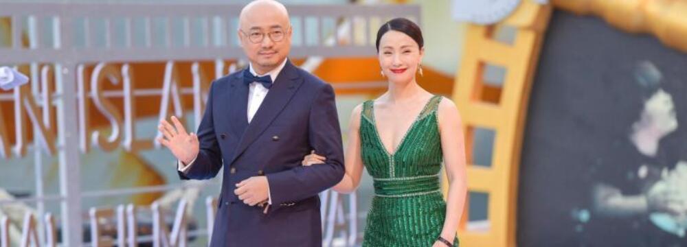邓超、江疏影、蔡徐坤、吴京、徐峥、陶虹、沈腾、霍思燕、杜江等众多影视明星亮相红毯现场。 图为徐峥、陶虹(右)亮相红毯。