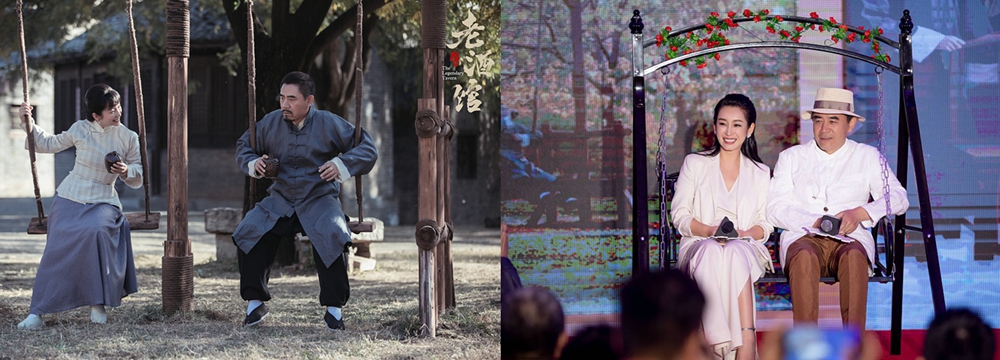 2019年9月4日,陈宝国、秦海璐在电视剧《老酒馆》中荡秋千,二人醉酒吐露真情,“谷三妹”与“陈掌柜”上演最浪漫的事。