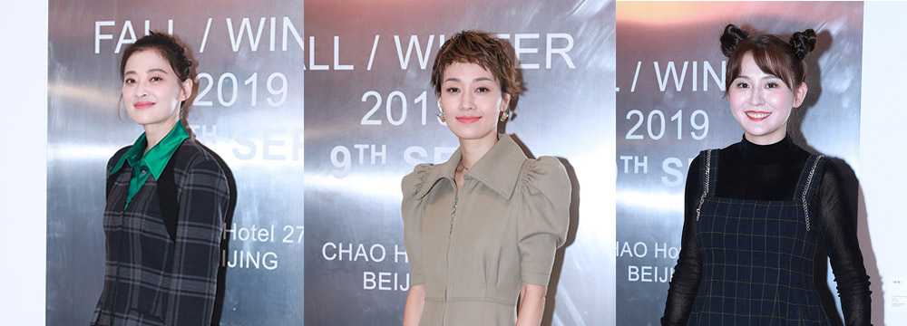 2019年9月9日,北京,IMMI 2019秋冬系列发布会举行。马伊琍穿泡泡袖长裙优雅看秀,和梅婷谈笑风生;梅婷皮肤状态超好,穿格子连衣裙青春美丽。热依扎梳哪吒头化“珍珠泪滴妆”俏皮可爱。