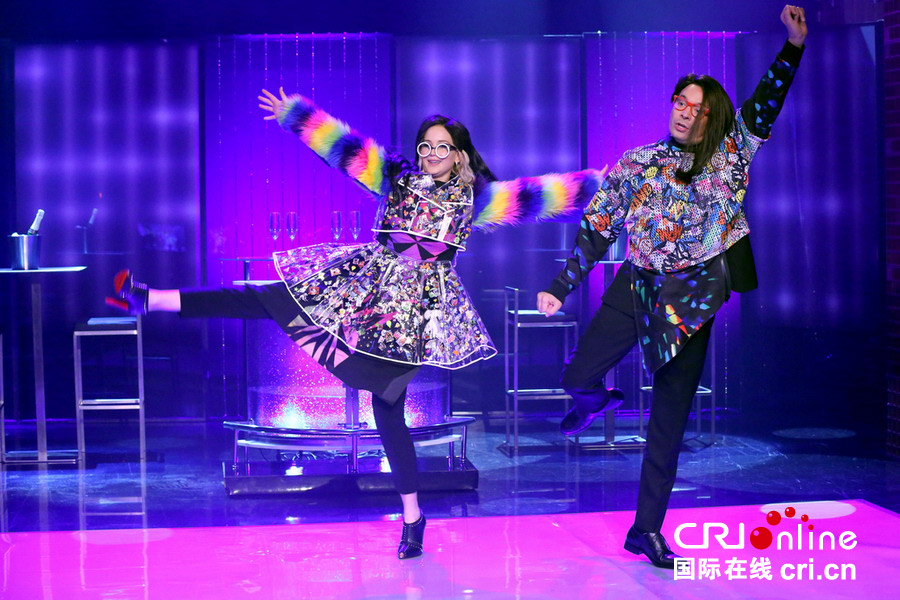 劳伦斯性感亮相录节目 穿彩色鸡毛装跳滑稽舞搞怪