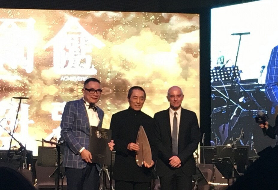 21日凌晨,张艺谋妻子陈婷更新微博,并上传张艺谋获奖的照片,照片中,张艺谋手捧奖杯,神态自若。