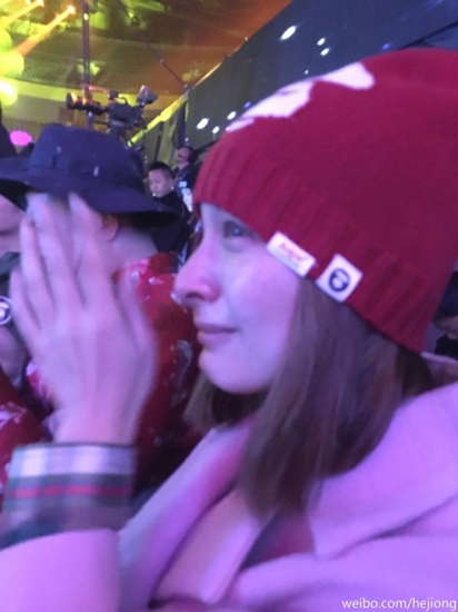 何炅在微博上晒出了吴昕抹泪照片并配文到:“她见到了年少时的偶像,合影回来一直哭个不停。然而,后面的红衣少年依然赢了。”随后吴昕也转发何炅微博写到:“我真的要冷静一下,因为我好像把我的偶像吓到了,我现在有点懊恼”。