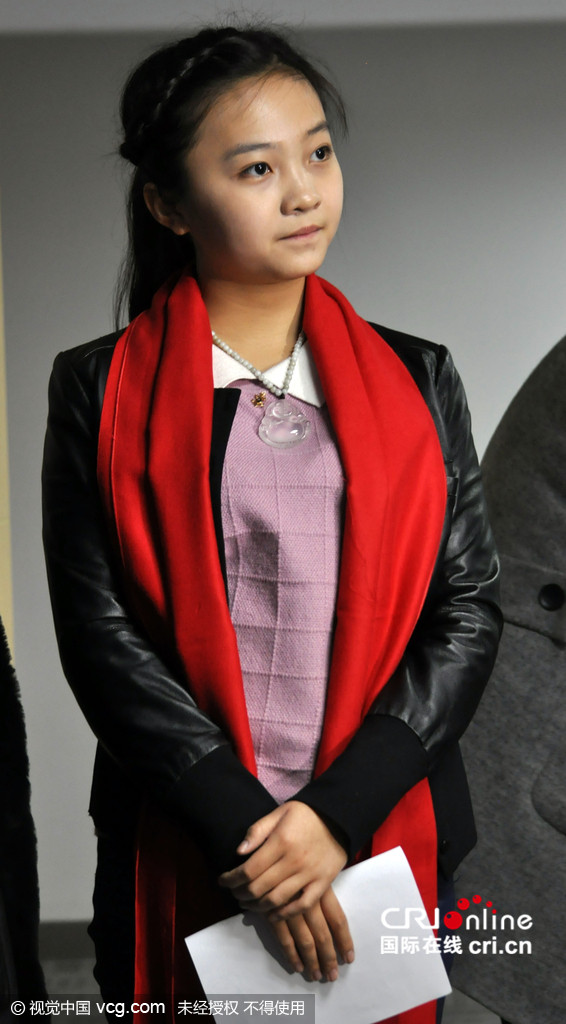 林妙可包子脸演讲声情并茂 戴红色围巾娇小可爱(图)