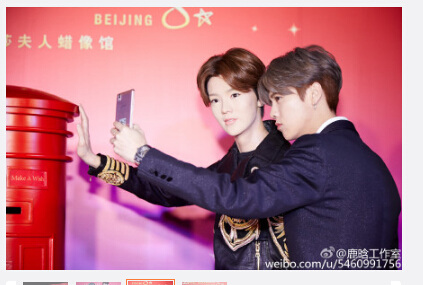 鹿晗与自己蜡像玩自拍 搞怪搭肩(组图)