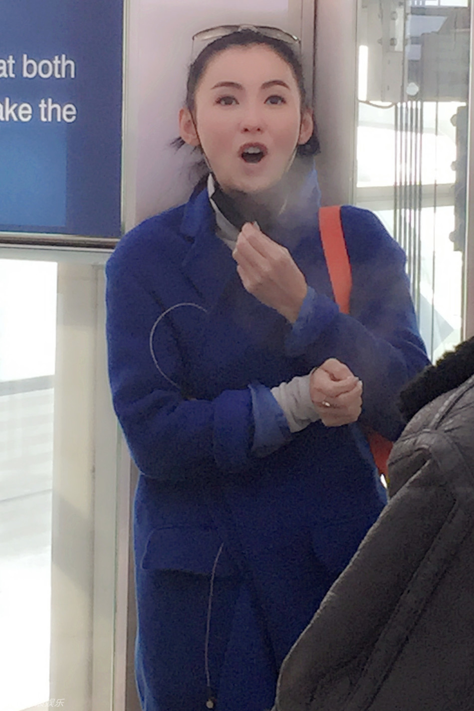 北京好冷!张柏芝现身搓手捂耳朵显可爱(组图)