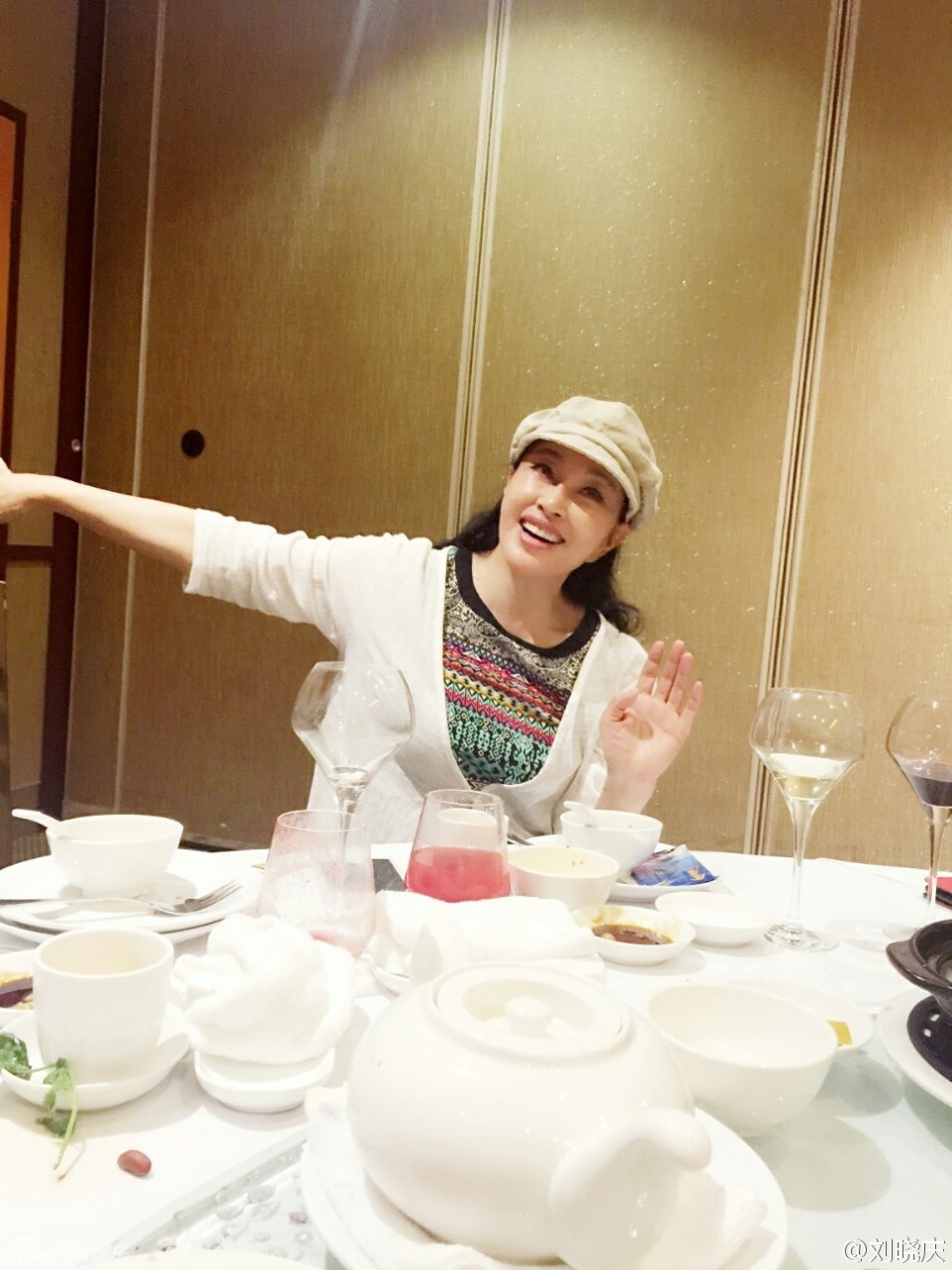 刘晓庆脸上无一丝皱纹 度假餐桌旁手舞足蹈(组图)