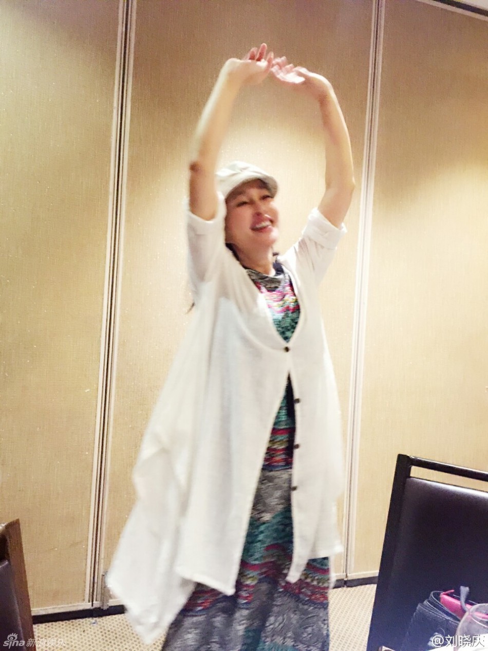 刘晓庆脸上无一丝皱纹 度假餐桌旁手舞足蹈(组图)