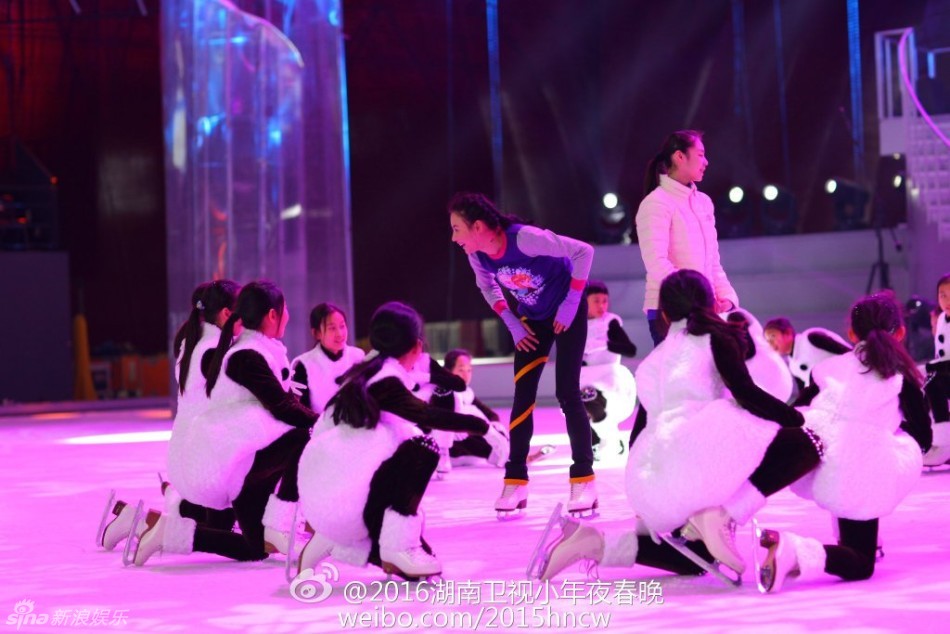 张柏芝裹羽绒服似钢铁侠 彩排湖南春晚冰上起舞(图)