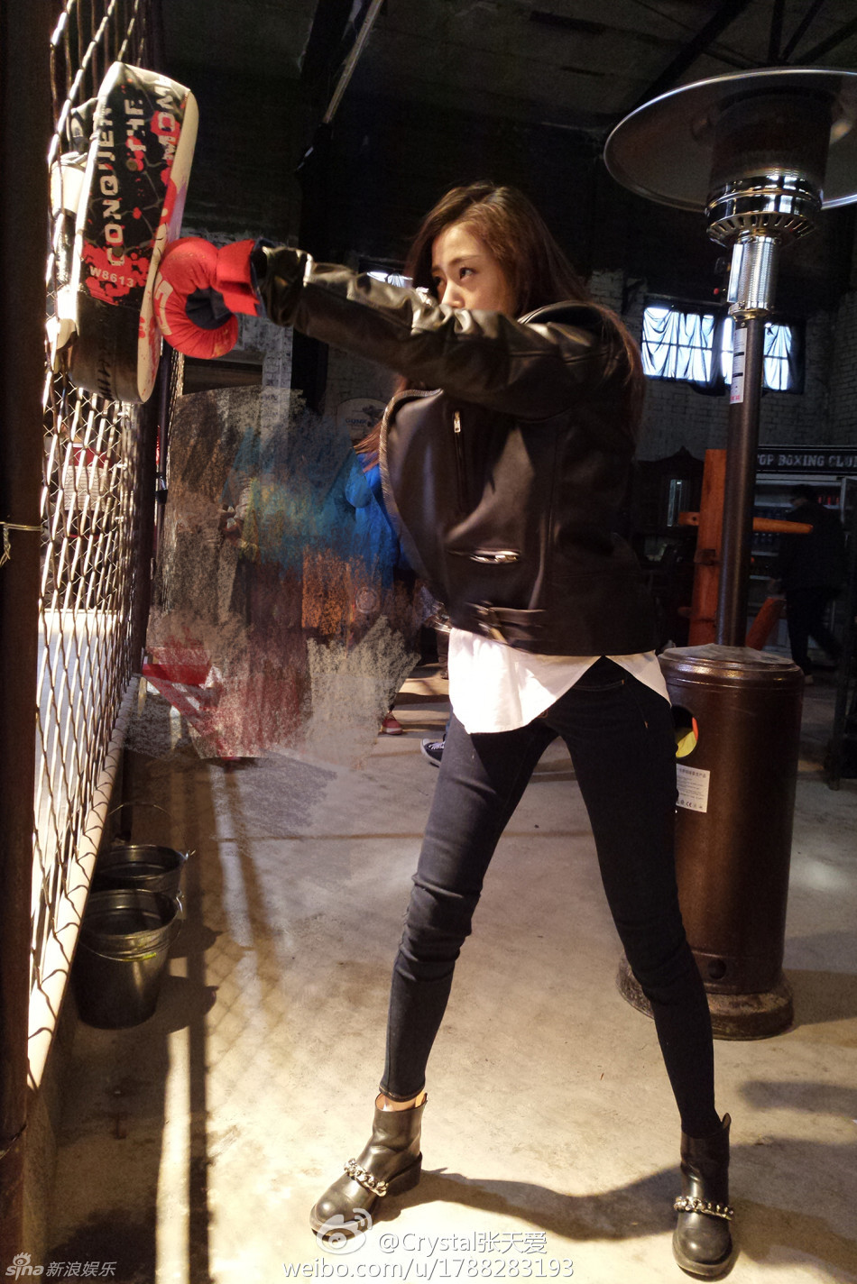 2月1日,张天爱在微博中晒出一组片场图。照片中的张天爱戴着拳击手套,眼神犀利,一展拳脚功夫,并配文称:“老公就想拍打戏,小年快乐。”