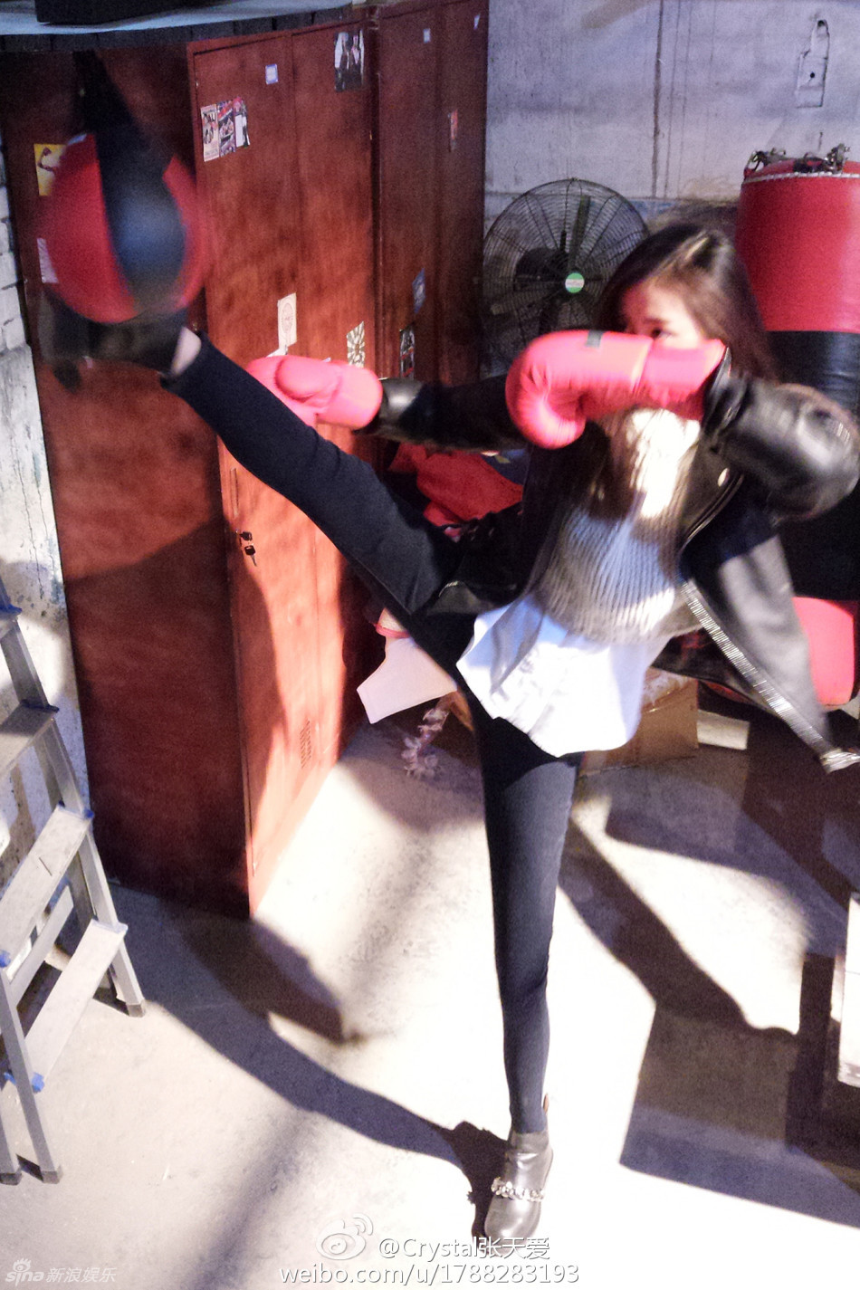 2月1日,张天爱在微博中晒出一组片场图。照片中的张天爱戴着拳击手套,眼神犀利,一展拳脚功夫,并配文称:“老公就想拍打戏,小年快乐。”
