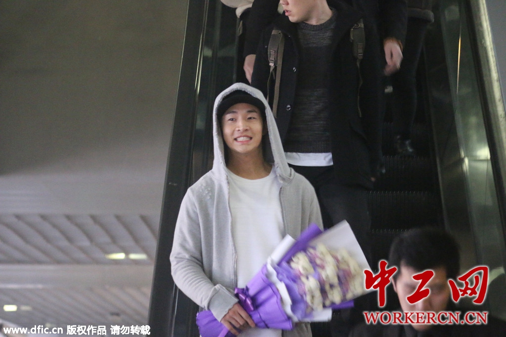 Super Junior-M成员Henry抵沪录节目 获粉丝献花(高清组图)
