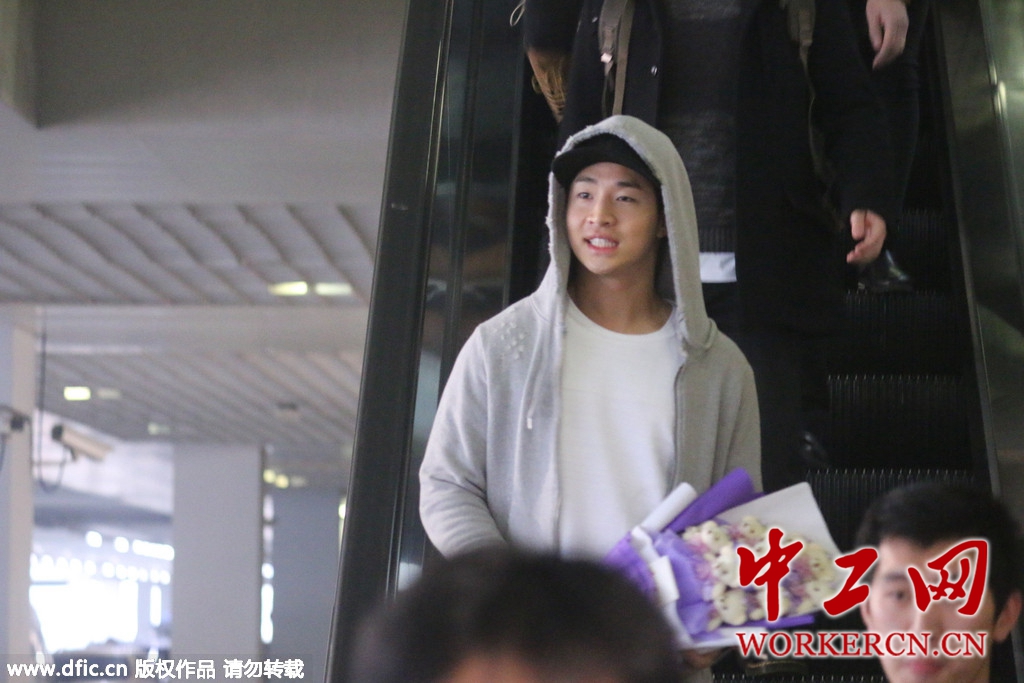 Super Junior-M成员Henry抵沪录节目 获粉丝献花(高清组图)