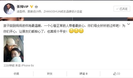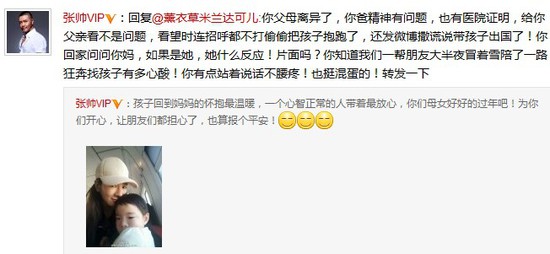网易娱乐2月10日报道2月10日,黄奕的好友设计师张帅在微博上po出黄奕和女儿的合照,称两人已经团聚,并暗指医生已经证实黄毅清精神有问题,之前说带孩子出国也是撒谎:“孩子回到妈妈的怀抱最温暖,一个心智正常的人带着最放心,你们母女好好的过年吧!为你们开心,让朋友们都担心了,也算报个平安!”