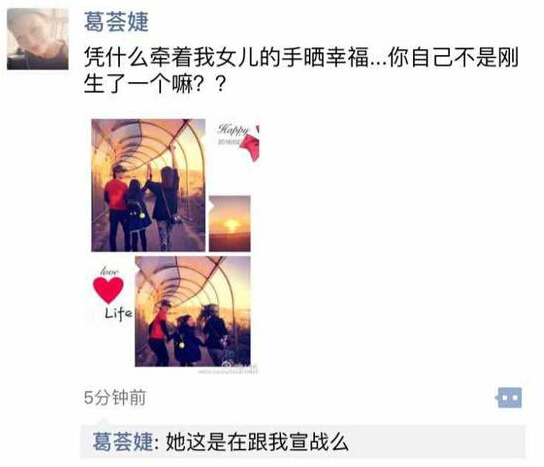 请你抱着你的女儿去晒你的幸福,也别假惺惺的装的你是那么的幸福,这种男人你幸福的点是什么???你也是过来人人,何必拿着我女儿假笑着!?干嘛?需要我开骂炒作你们吗??放下孩子,然后你闭嘴!