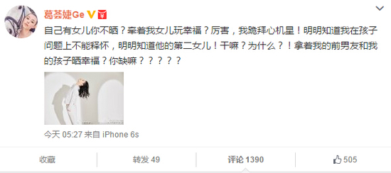 自己有女儿你不晒?牵着我女儿玩幸福?厉害,我跪拜心机星!明明知道我在孩子问题上不能释怀,明明知道他的第二女儿!干嘛?为什么?!拿着我的前男友和我的孩子晒幸福?你缺嘛?????