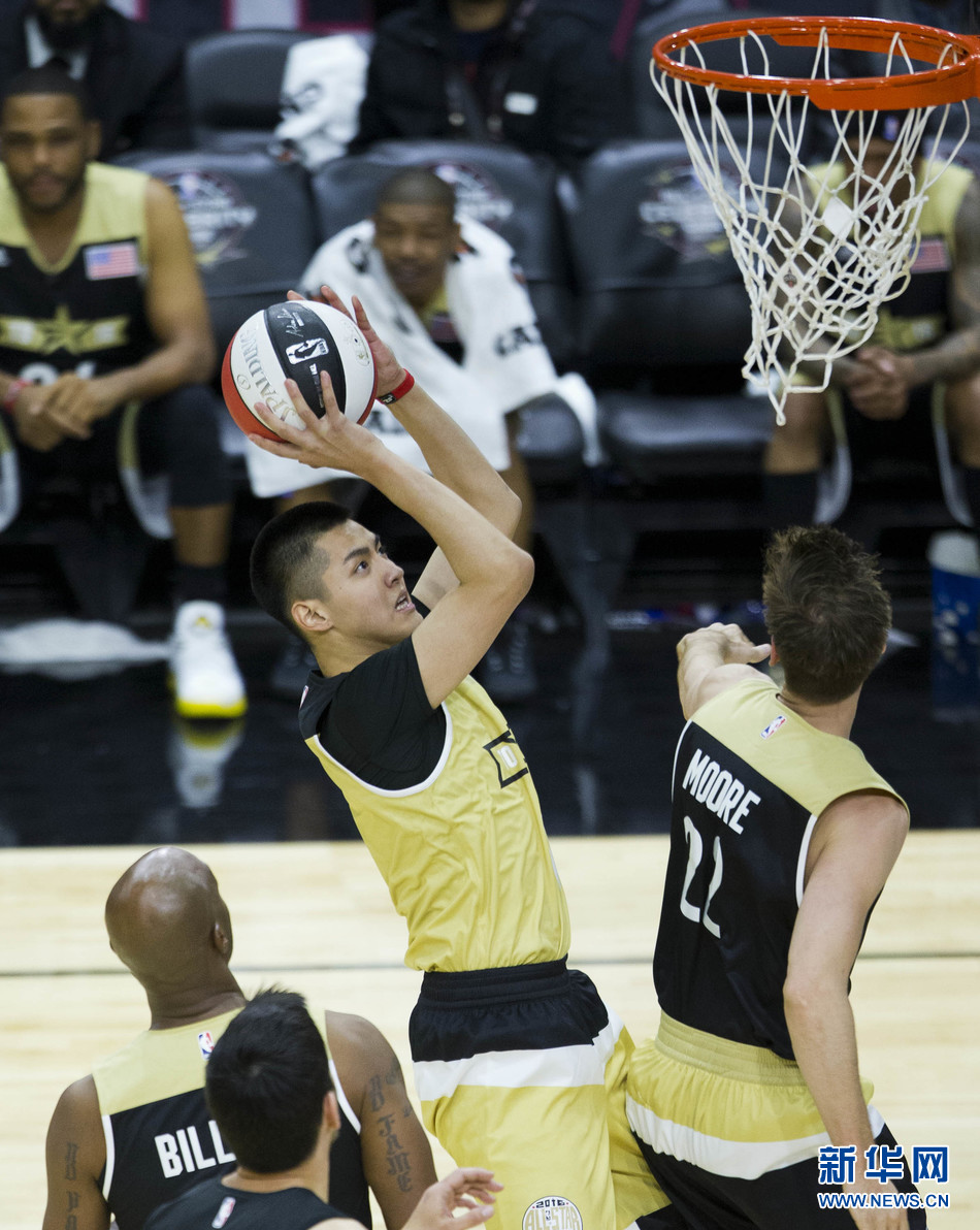 2月12日,吴亦凡在名人赛中上篮。新华网发(邹峥摄)
