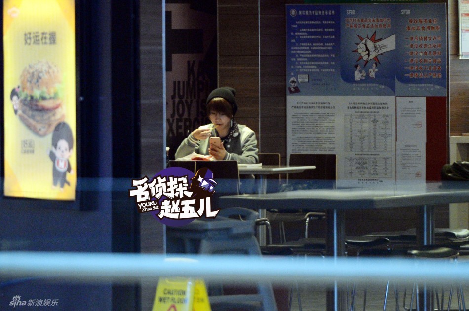 吴京1人出门会友大吃大喝 脸上冒出高原红(组图)