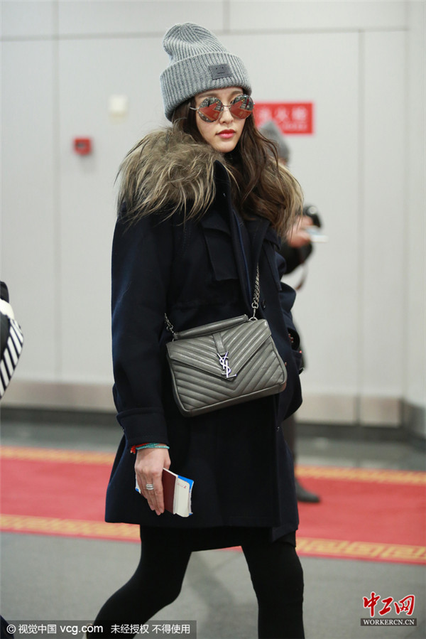 花絮:唐嫣毛线帽配酷炫墨镜 北京转机继续拍戏(图)