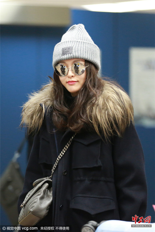 花絮:唐嫣毛线帽配酷炫墨镜 北京转机继续拍戏(图)