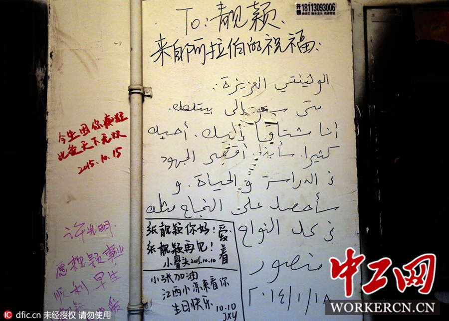 2016年2月17日,四川成都,张靓颖曾经住过的老房楼道写满了“凉粉”的留言。在成都市营康西路一小区的5楼楼道内写满了对张靓颖的祝福,该地因张靓颖曾在此居住过而出名,许多粉丝慕名前来写字留念,但对周围居民造成困扰。虽然定期粉刷,仍然挡不住粉丝的热情。