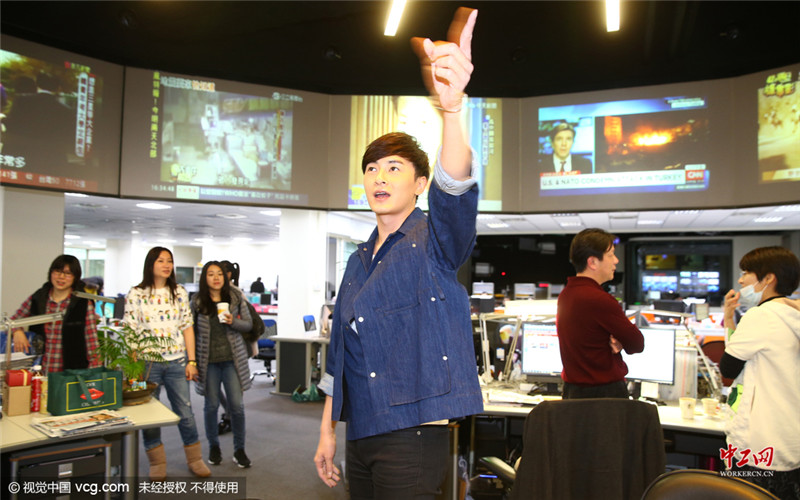 2月18日台北,郑元畅参观报社变邻家小哥,咬手指尽显呆萌可爱。
