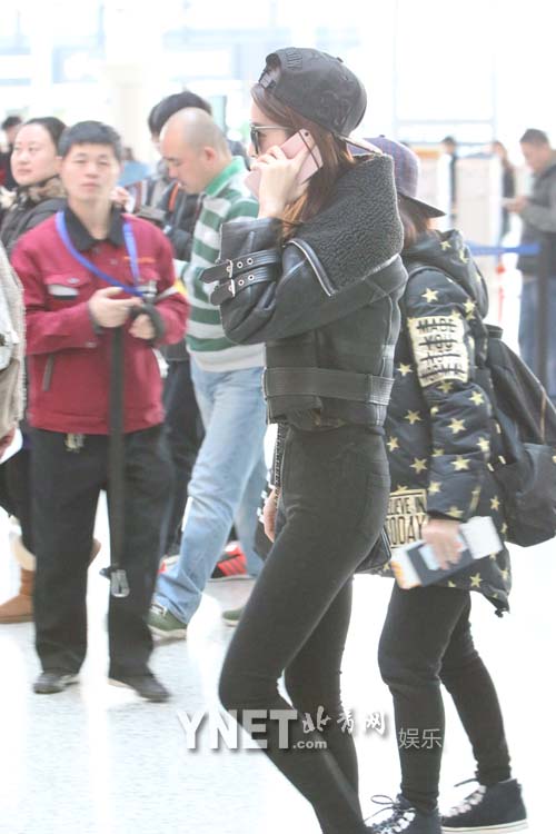 颖儿紧身裤现身机场 棒球帽反戴帅气十足(图)
