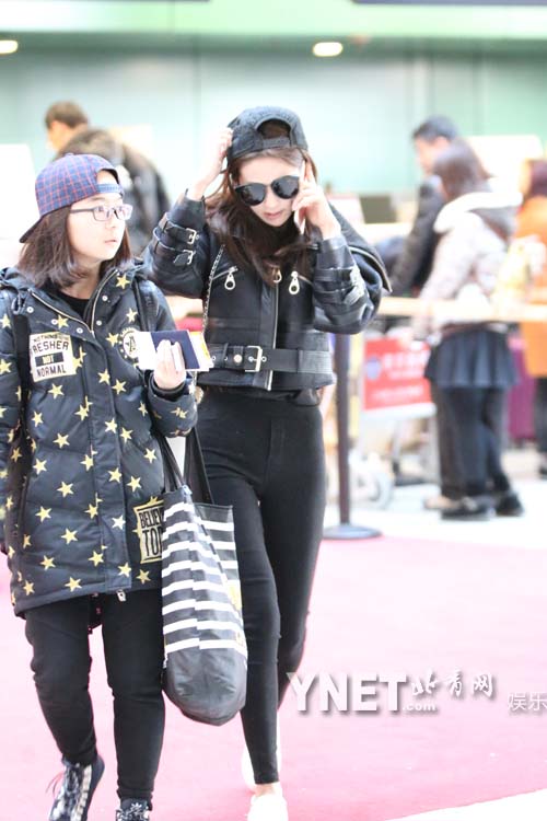 颖儿紧身裤现身机场