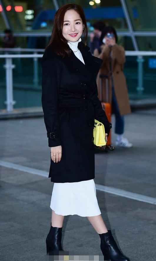 组图:朴敏英现身机场赴美 黑白装扮干练女人味足
