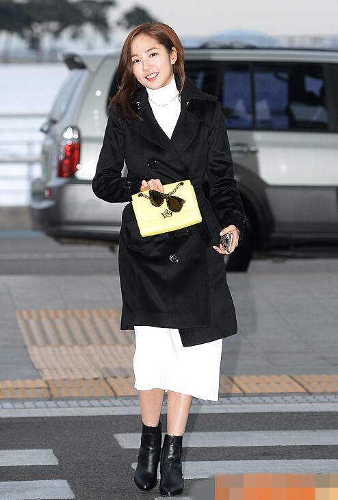 组图:朴敏英现身机场赴美 黑白装扮干练女人味足