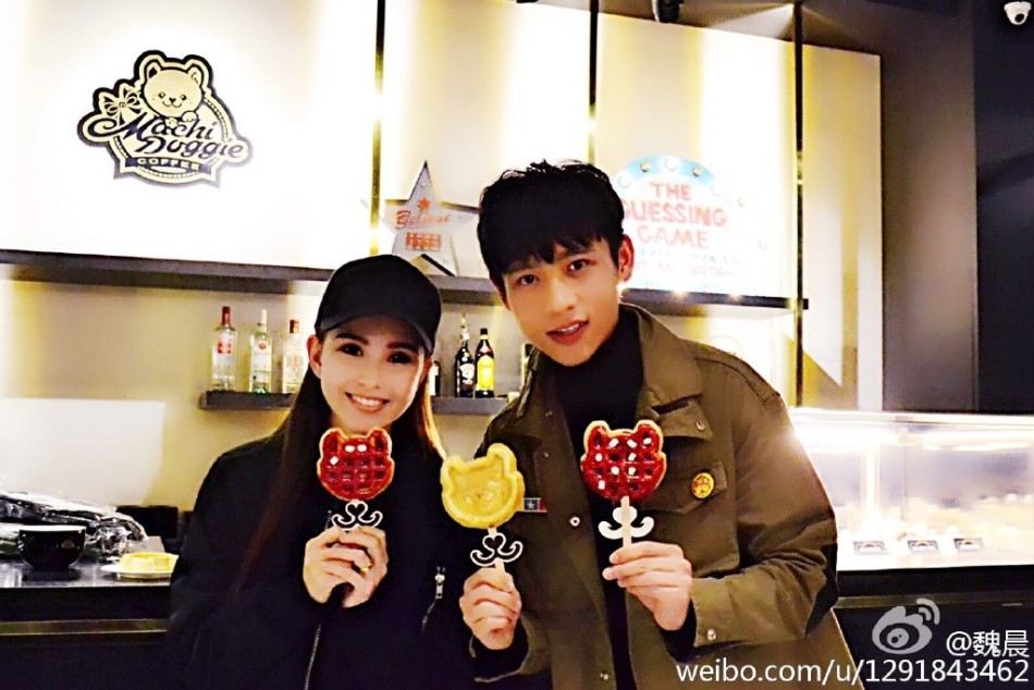 组图:魏晨光顾昆凌咖啡店 二人亲密合影聊天