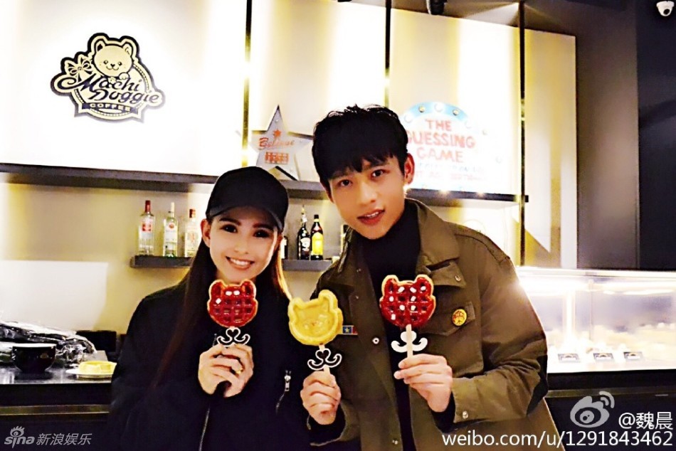 组图:魏晨光顾昆凌咖啡店 二人亲密合影聊天